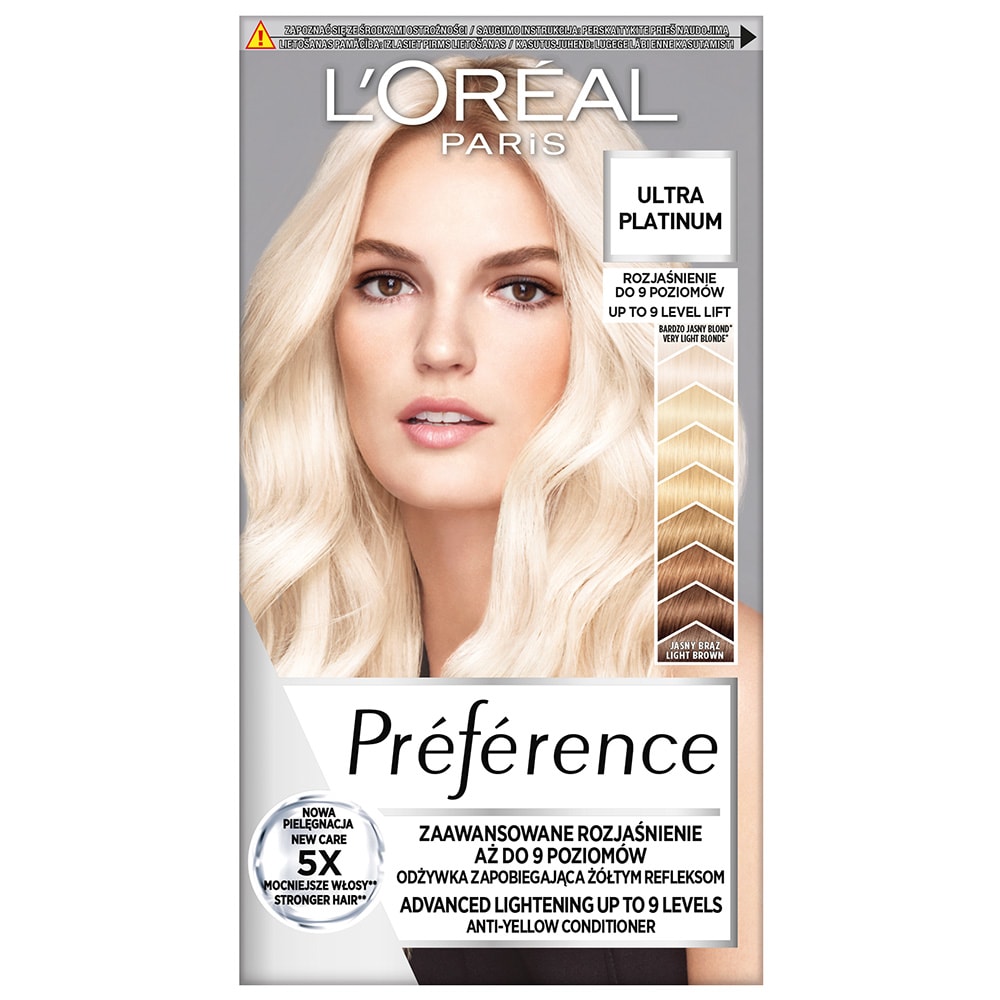 Plaukų šviesiklis be amoniako – pašviesina plaukus iki 8 lygių • Efektyvus šviesinimas su nepageidaujamus gelsvus atspalvius neutralizuojančia plaukų priežiūra • Gryna ir spindinti platininė blondinė • Formulė be amoniako • Su blizgesio suteikiančiu kompleksu Išbandykite šviesinimo galią iki 8 lygių su „Préférence“ – pažangiausia ekstremalaus šviesinimo technologija. Geltonus atspalvius neutralizuojantis kondicionierius su blizgesio suteikiančiu kompleksu, suteikia plaukams vėsų toną ir neleidžia išryškėti geltoniems atspalviams, bei švelnina plaukus. Naudokite kondicionierių kiekvieną savaitę ir platininė plaukų spalva liks gryna ir spindinti.